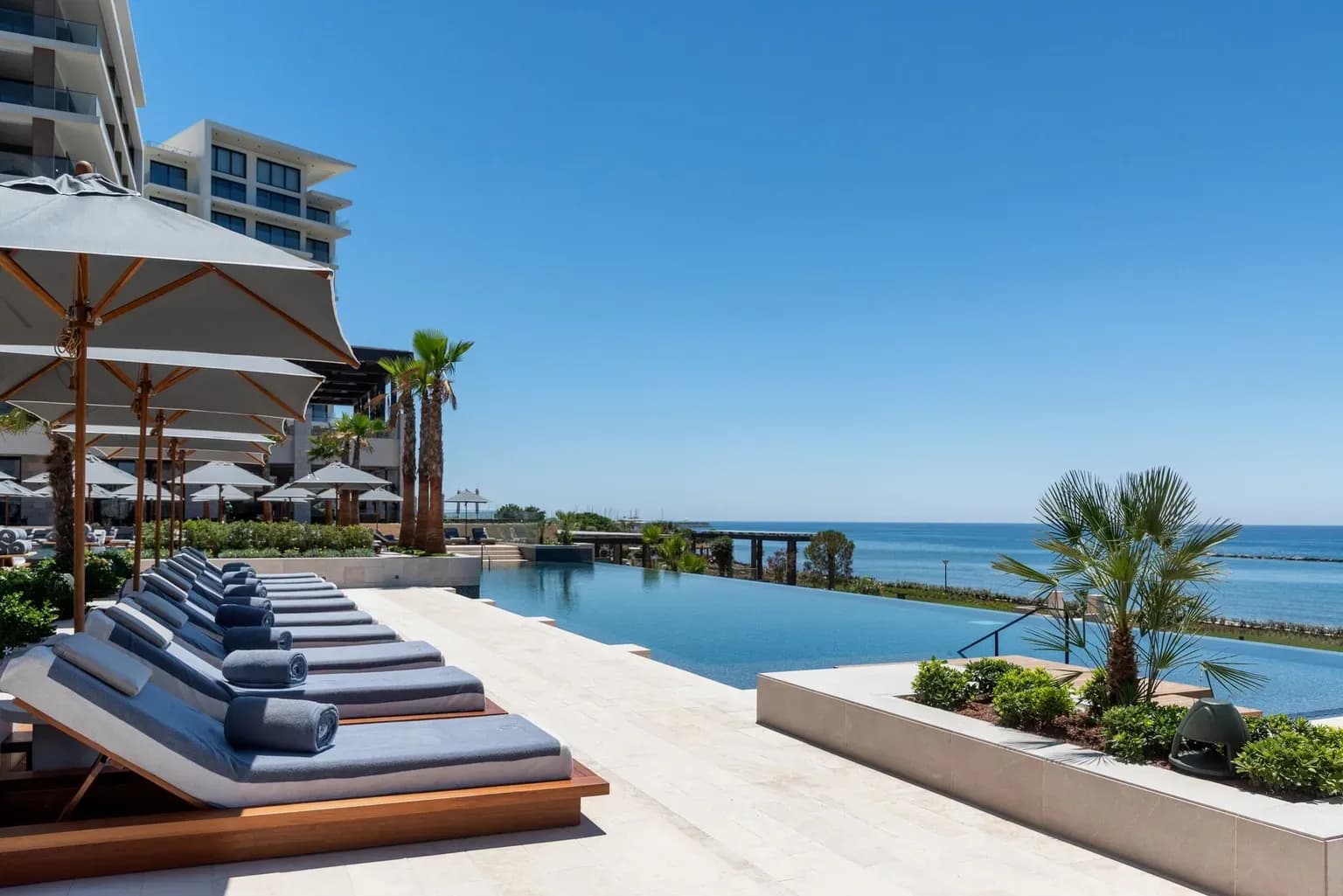 The Amara Resort is situated next to a stunning Cypriot beach. This venue offers couples both indoor and outdoor locations for their wedding in Cyprus. The hotel's lush lawn is an ideal setting for an unforgettable ceremony, while the spacious banquet hall is perfect for a wedding dinner. The guest area and lawn adjacent to the banquet hall provide a wonderful opportunity for organizing welcome drinks.